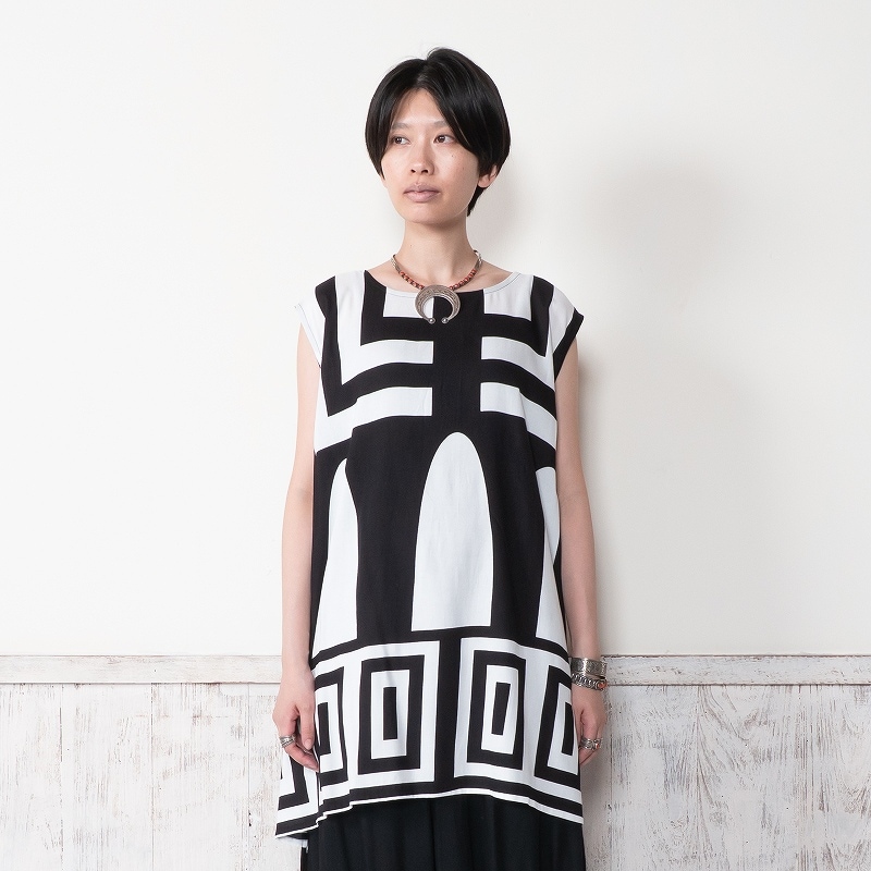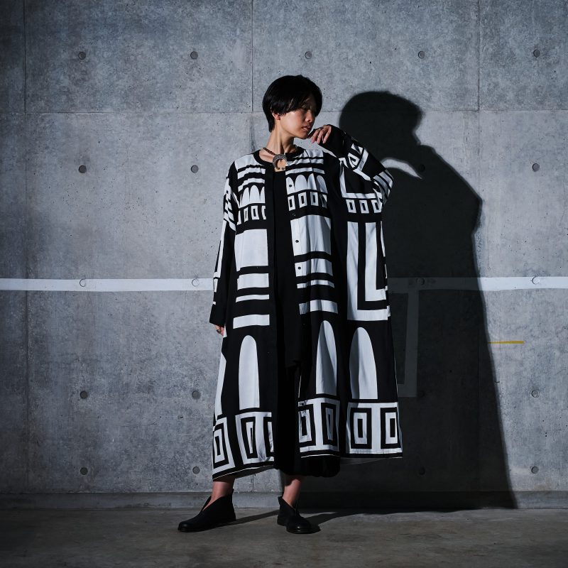 モノトーンの大柄プリントが印象的なシリーズ。神殿をイメージした柄で、