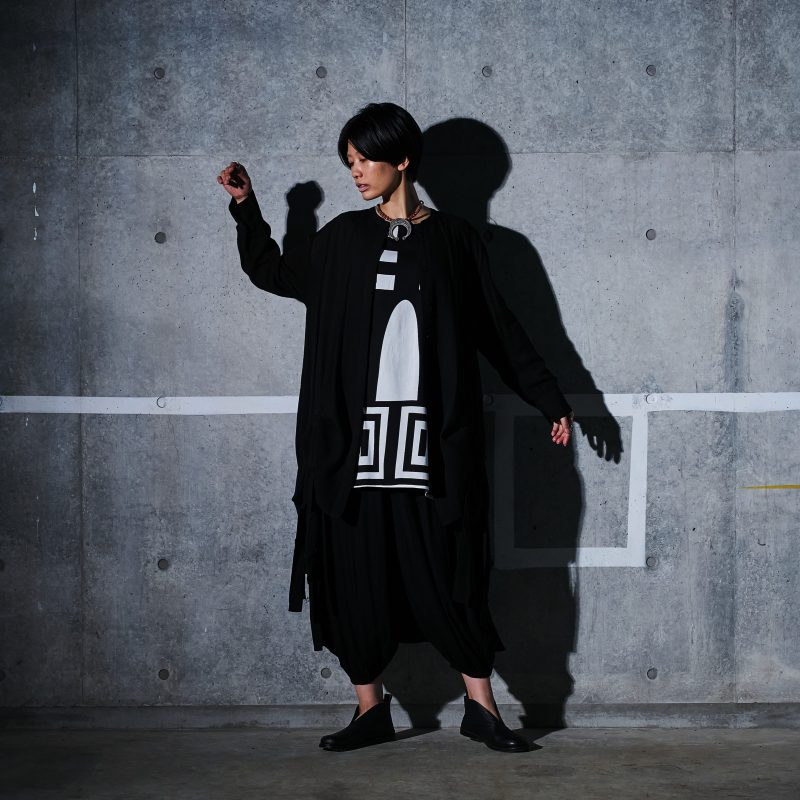 プリントがより一層際立ち、洗練されたモード感のある装いに仕上がります。