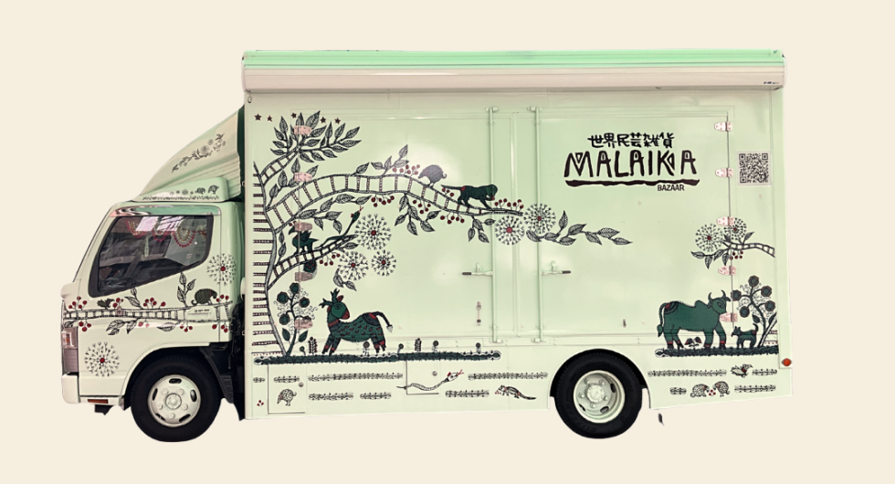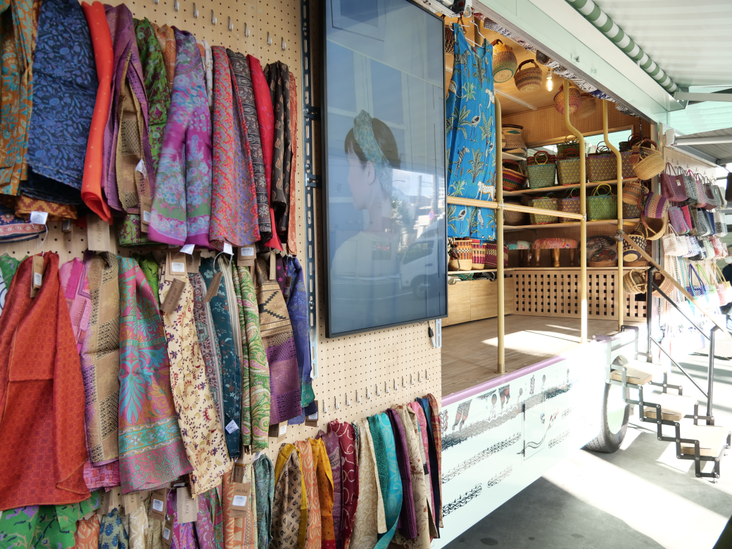 マライカファッショントラックは、異国の市場のようなマライカバザールの雰囲気をコンパクトに詰め込んだ移動販売車。
