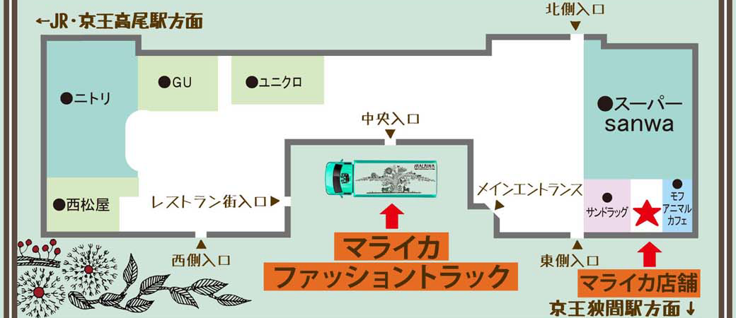 新作ファッションアイテムや人気の雑貨をたっぷり載せて、あなたの街へ“旅するマライカ”がまいります。
